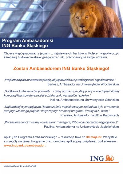 Zostań Ambasadorem ING Banku Śląskiego na swojej uczelni we Wrocławiu