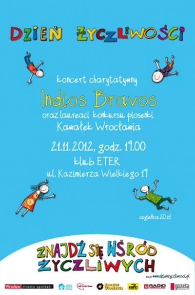 21 listopada 2012 r. o godz. 19.00 w klubie ETER odbędzie się wyjątkowy koncert charytatywny, na którym wystąpią Indios Bravos oraz laureaci konkursu „Kawałek Wrocławia”. Dochód ze sprzedaży biletów-cegiełek w cenie 20 zł zostanie przekazany dla podopiecznych Fundacji Wrocławskie Hospicjum dla Dzieci.