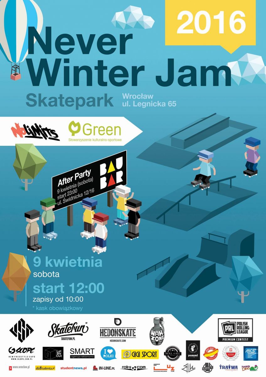 W sobotę 9 kwietnia 2016 na wrocławskim skateparku odbył się Never Winter Jam. 9 edycja najlepszej imprezy rolkowej zaliczającej się do Polish Rolling League. Zawodnicy startowali w 3 głównych kategoriach: KIDS, OPEN i PRO. Dodatkową kategorią był BLADECROSS (wyścig po trasie z przeszkodami). Wielu z widzów było pod tak ogromnym wrażeniem wyczynów rolkarzy, że organizatorzy wraz z zawodnikami zdecydowali się na spontaniczne zorganizowanie jeszcze jednej kategorii-BEST TRICK.