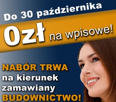 Zapisując się na kierunek zamawiany budownictwo do 30. października opłata za wpisowe wynosi 0 zł!
