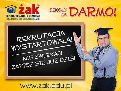 Wraz z końcem kwietnia ruszyła nowa rekrutacja w Centrum Nauki i Biznesu "ŻAK". Zadzwoń lub zgłoś się do najbliższego sekretariatu szkoły, a uzyskasz potrzebne informacje i pomoc, przy podjęciu decyzji, który kierunek wybrać.
