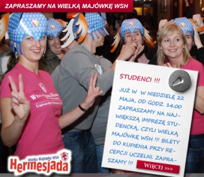 Tegoroczne wielkie, studenckie święto pod szyldem WSH odbędzie się w niedzielę, 22 maja 2011r. Start o godz. 14.00 na terenie nowego campusu Wyższej Szkoły Handlowej, przy ul. Ostrowskiego 22.