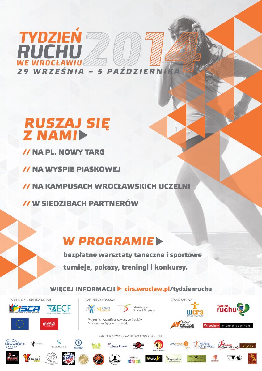 Wrocławskie Centrum Rozwoju Społecznego serdecznie zaprasza na tegoroczną edycję Tygodnia Ruchu, który odbędzie się między 29 września a 5 października we Wrocławiu. Tydzień Ruchu to ponad 120 bezpłatnych wydarzeń sportowych, przygotowanych z myślą o wszystkich, bez względu na wiek i formę.
