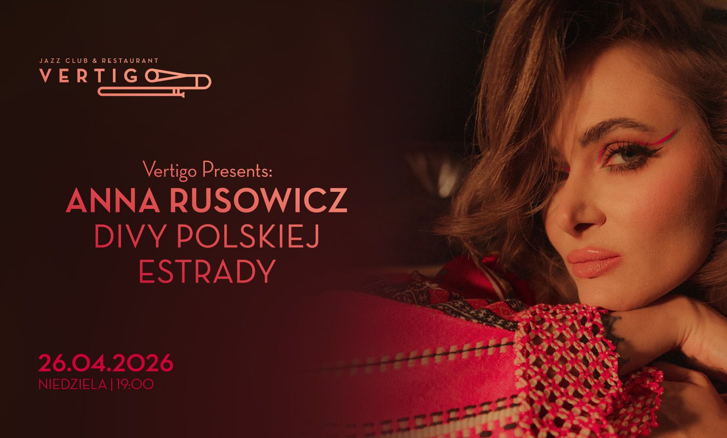 REGULAMIN: Lokal po godzinie 19:00 przeznaczony jest dla osób powyżej 18 roku życia. Osoby niepełnoletnie nie zostaną wpuszczone na wydarzenia organizowane przez Vertigo Jazz Club & Restaurant