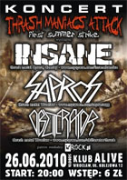 Klub Alive zaprasza na kolejny koncert! Tym razem zagrają zespoły Obliterator, Sapros i Insane.